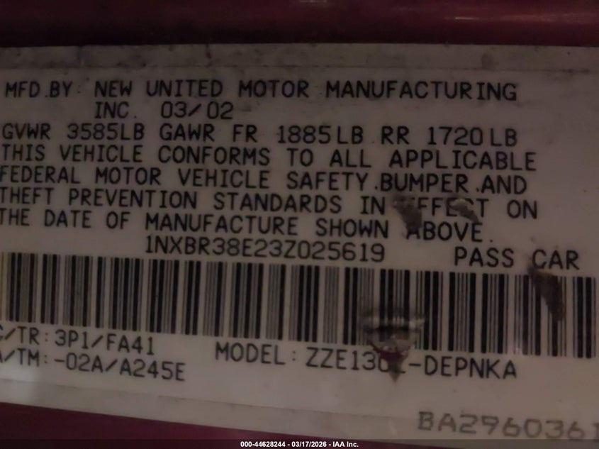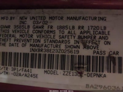 • 1NXBR38E23Z025619