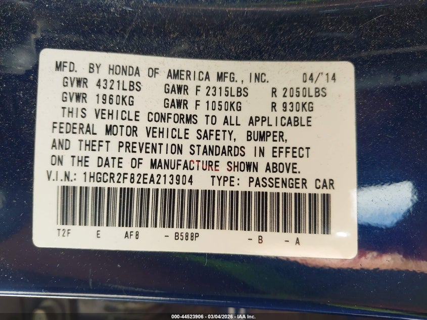 • 1HGCR2F82EA213904