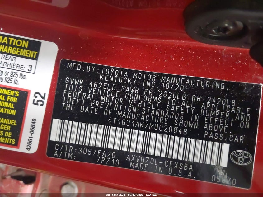 • 4T1G31AK7MU020848