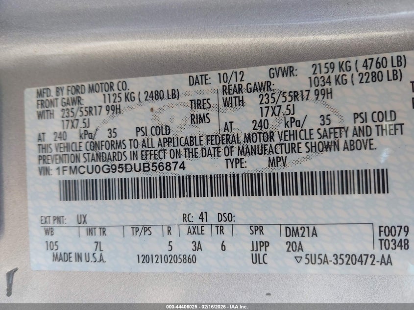 • 1FMCU0G95DUB56874