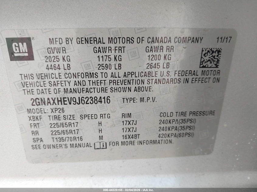 • 2GNAXHEV9J6238416
