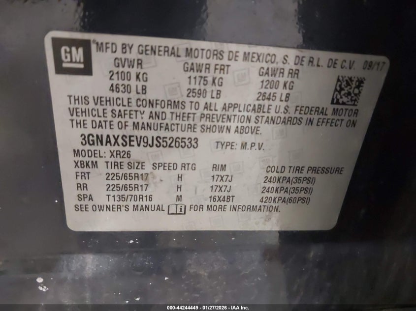 • 3GNAXSEV9JS526533