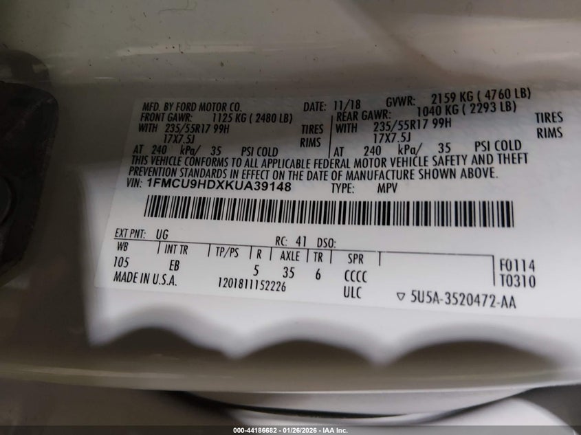 • 1FMCU9HDXKUA39148
