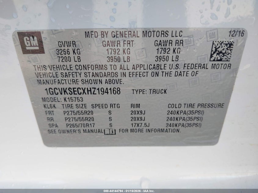 • 1GCVKSECXHZ194168