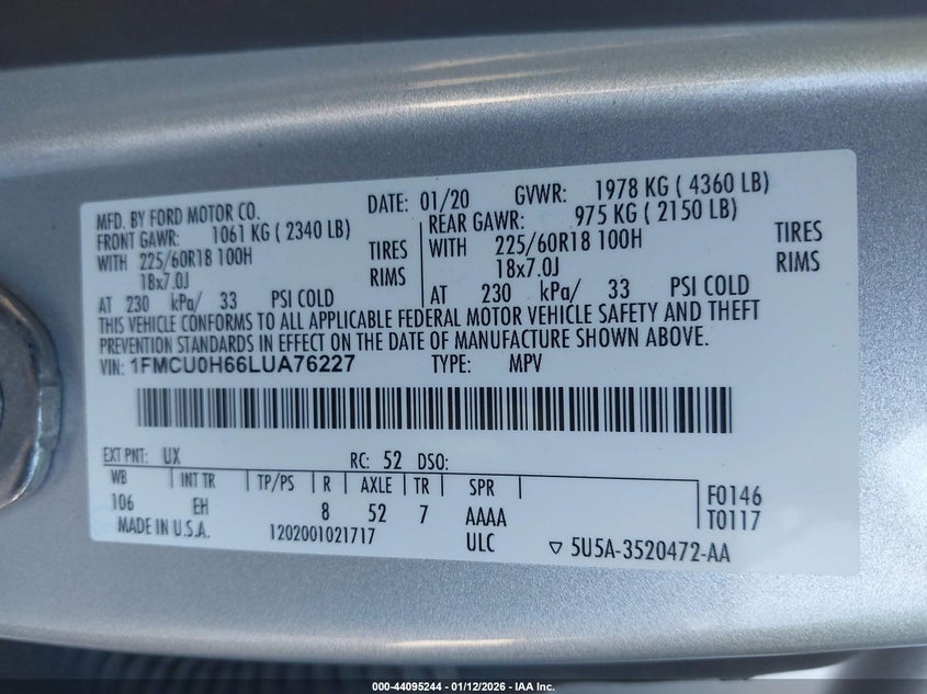 • 1FMCU0H66LUA76227