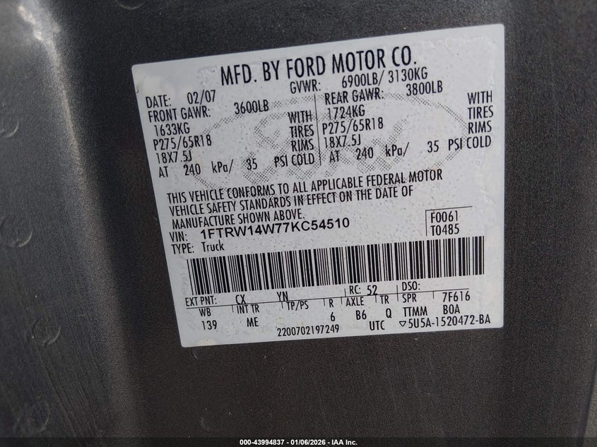 • 1FTRW14W77KC54510