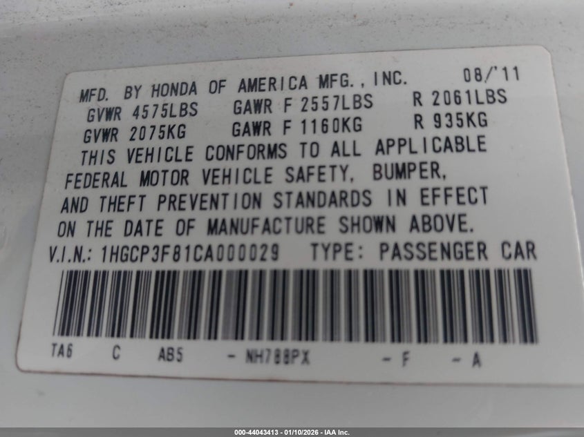 • 1HGCP3F81CA000029