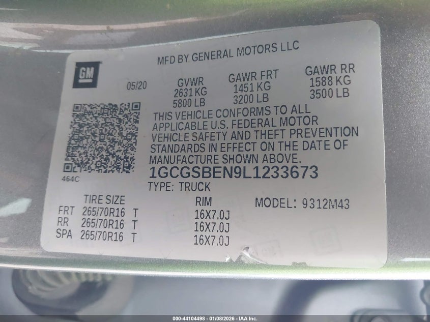 • 1GCGSBEN9L1233673