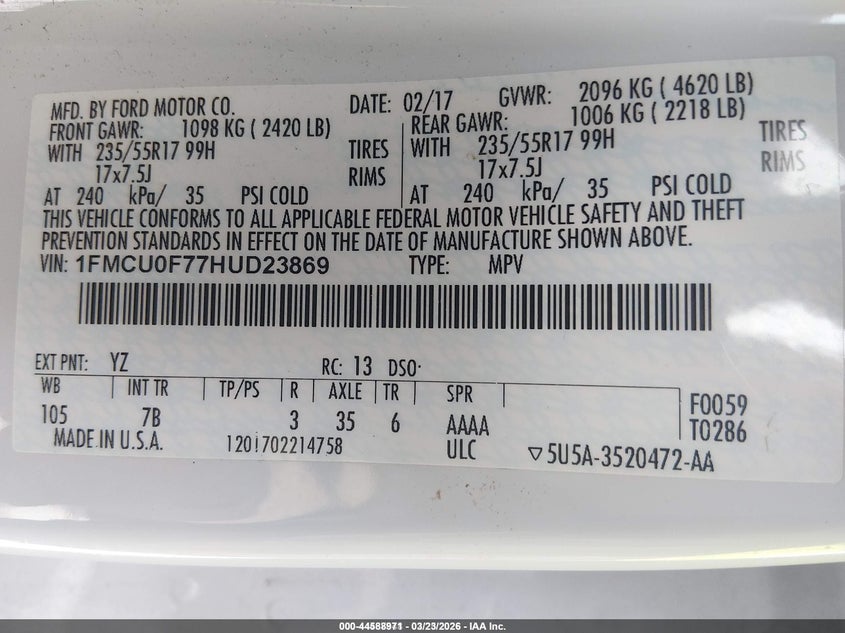 • 1FMCU0F77HUD23869