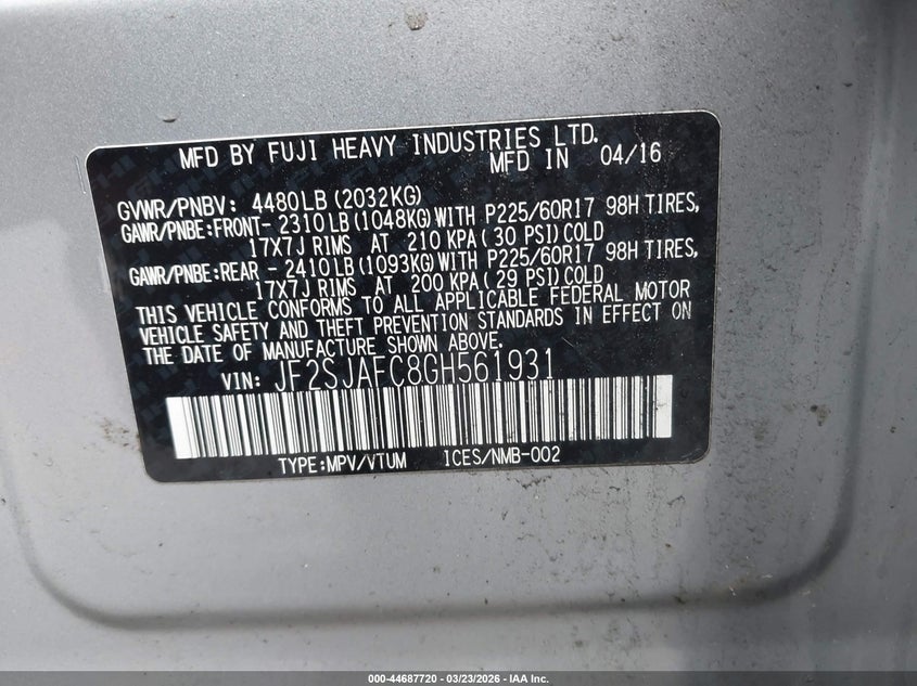 • JF2SJAFC8GH561931
