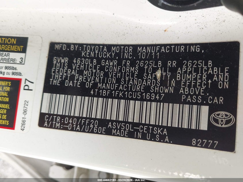 • 4T1BF1FK1CU516947
