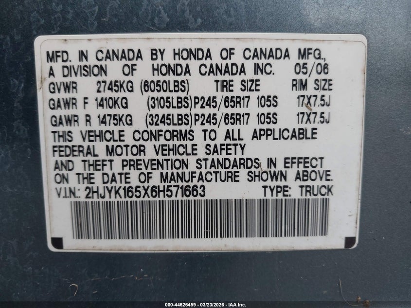 • 2HJYK165X6H571663