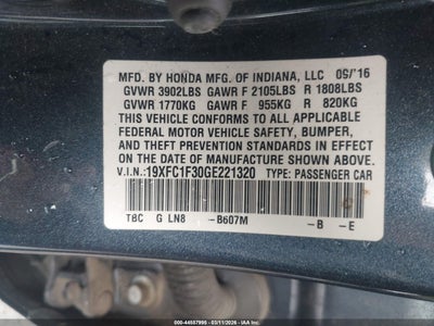 2016 HONDA CIVIC EX-T for Sale in East Freedom, PA