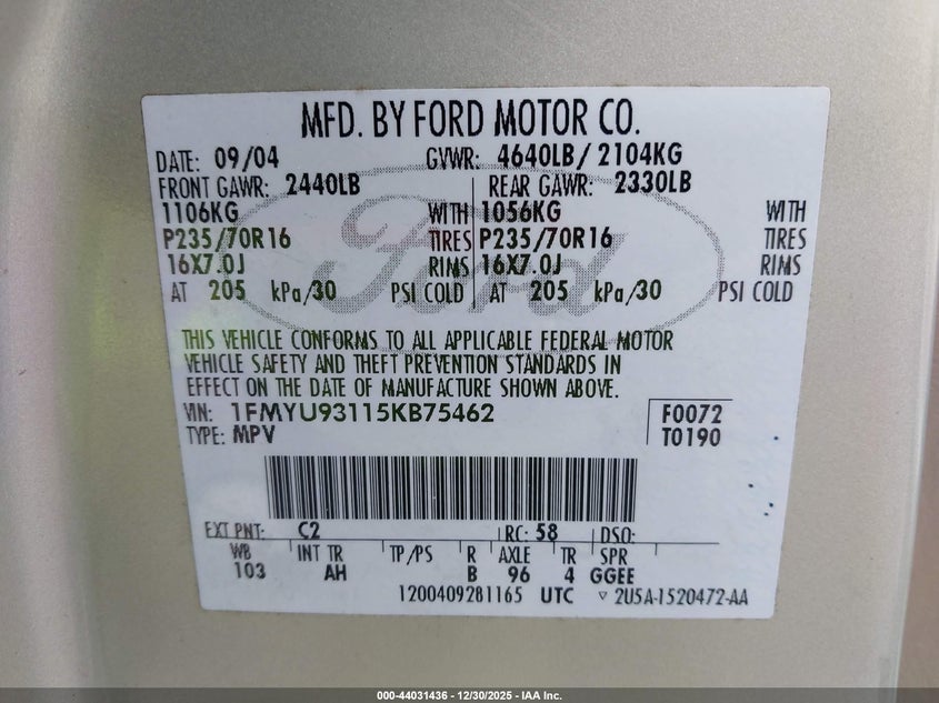 • 1FMYU93115KB75462