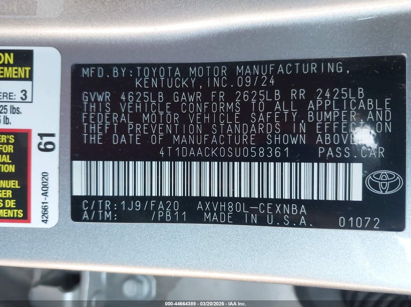 • 4T1DAACK0SU058361