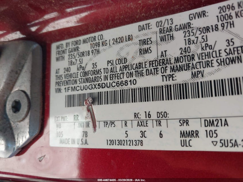 • 1FMCU0GX5DUC66810