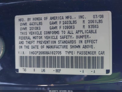 • 1HGCP26808A162705