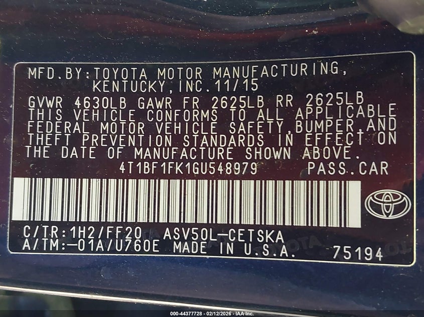 • 4T1BF1FK1GU548979