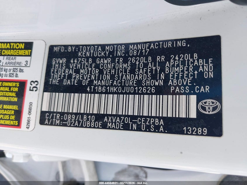 • 4T1B61HK0JU012626