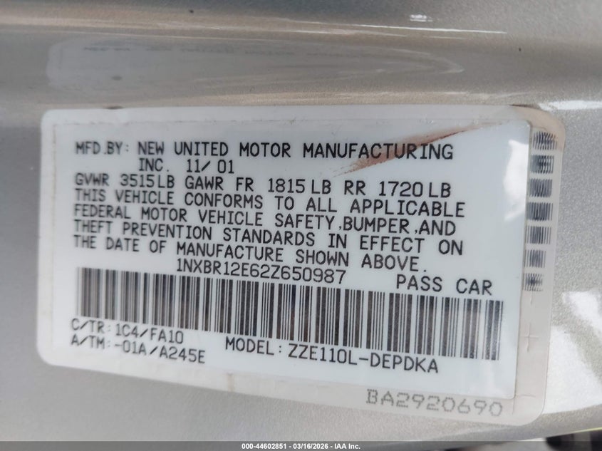 • 1NXBR12E62Z650987