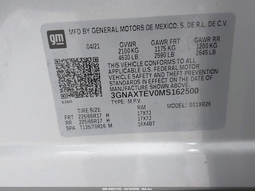 • 3GNAXTEV0MS162500