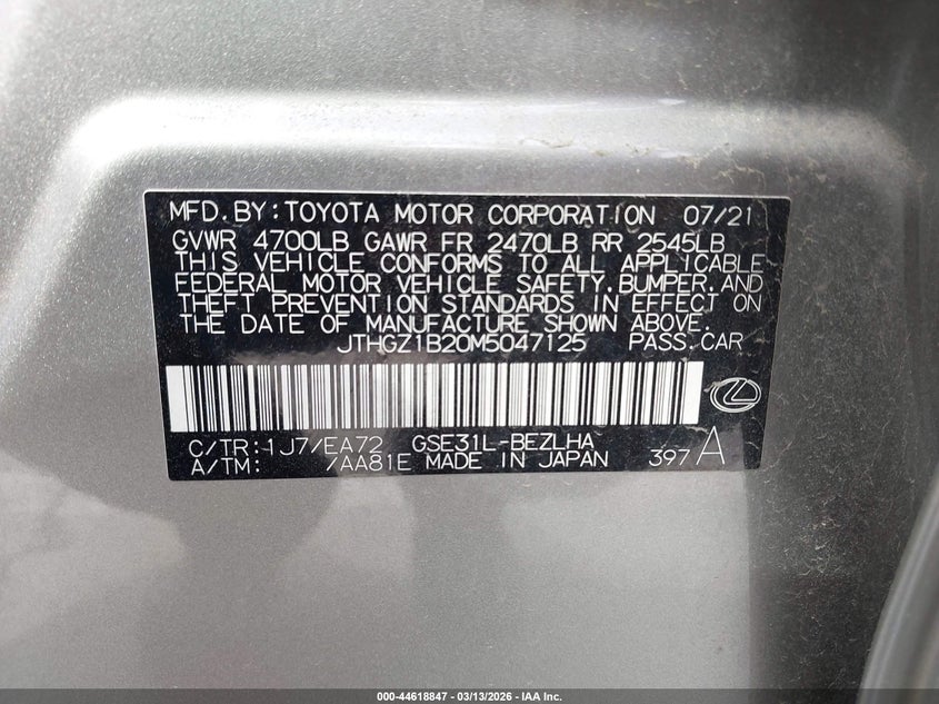 • JTHGZ1B20M5047125