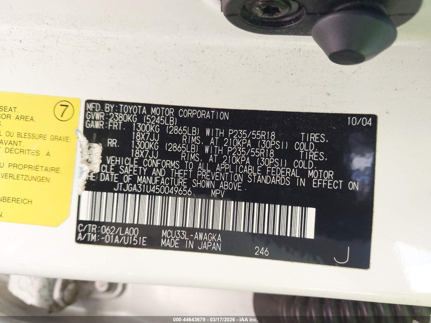 • JTJGA31U450049656