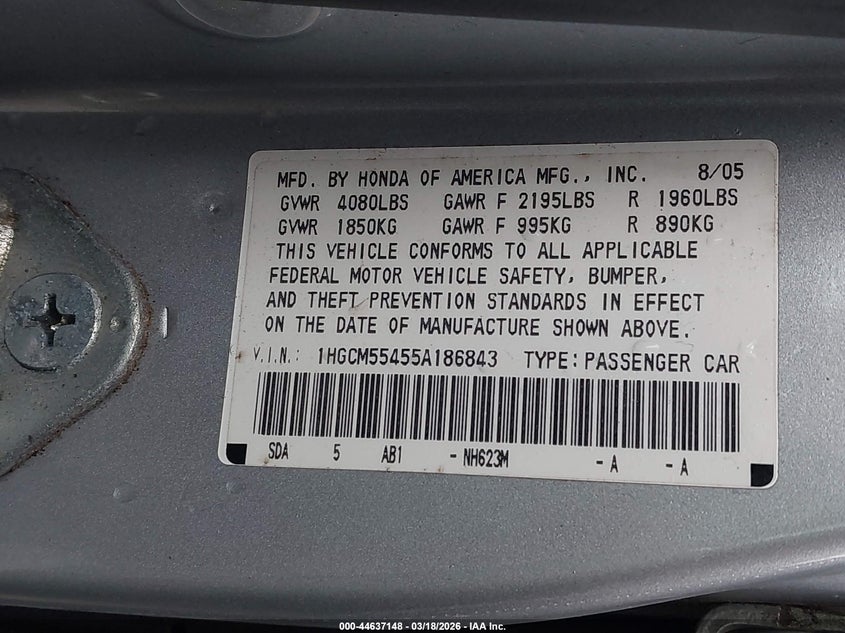 • 1HGCM55455A186843