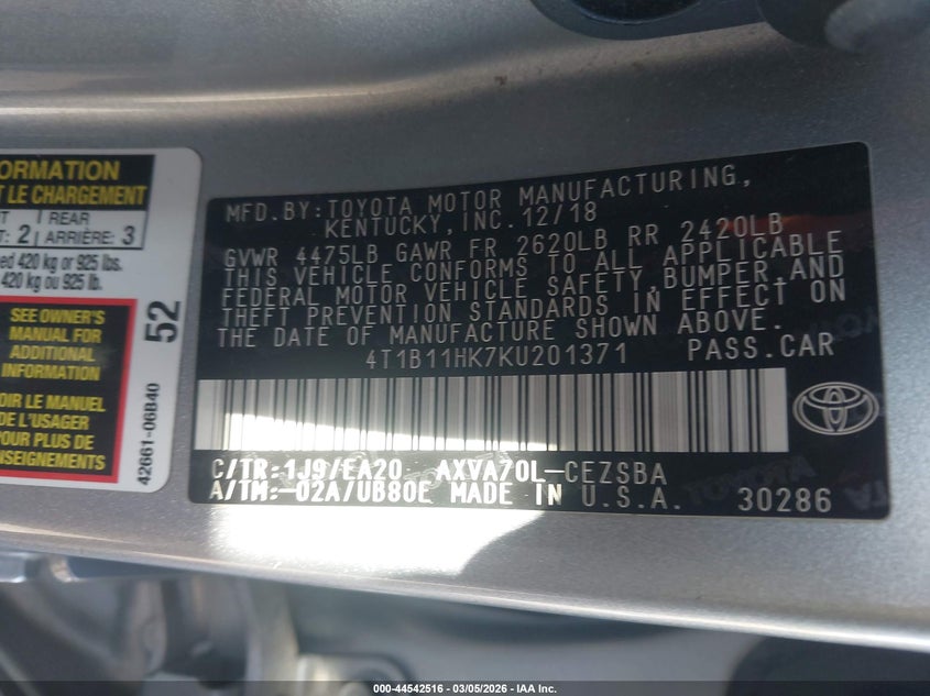 • 4T1B11HK7KU201371