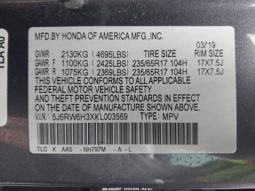 • 5J6RW6H3XKL003569