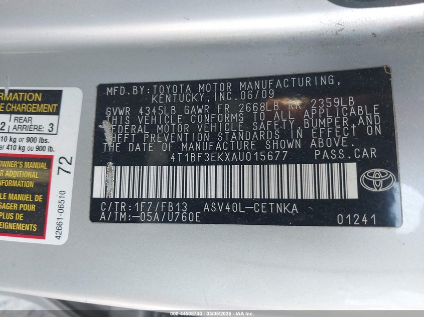 • 4T1BF3EKXAU015677
