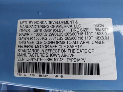 • 5FNYG1H69SB010043