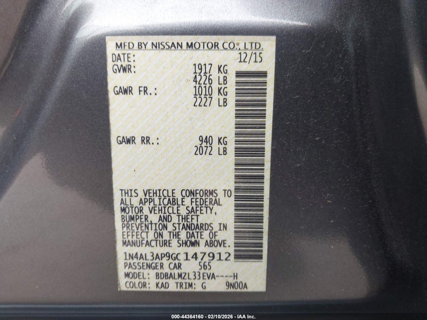 • 1N4AL3AP9GC147912
