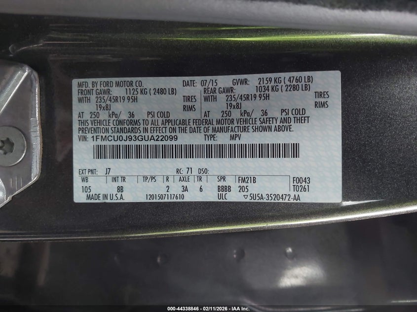 • 1FMCU0J93GUA22099