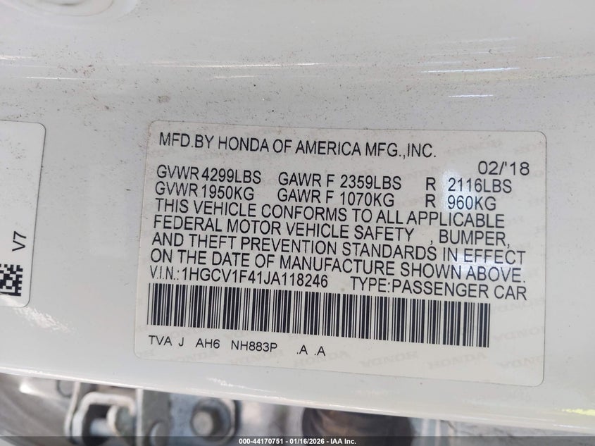 • 1HGCV1F41JA118246