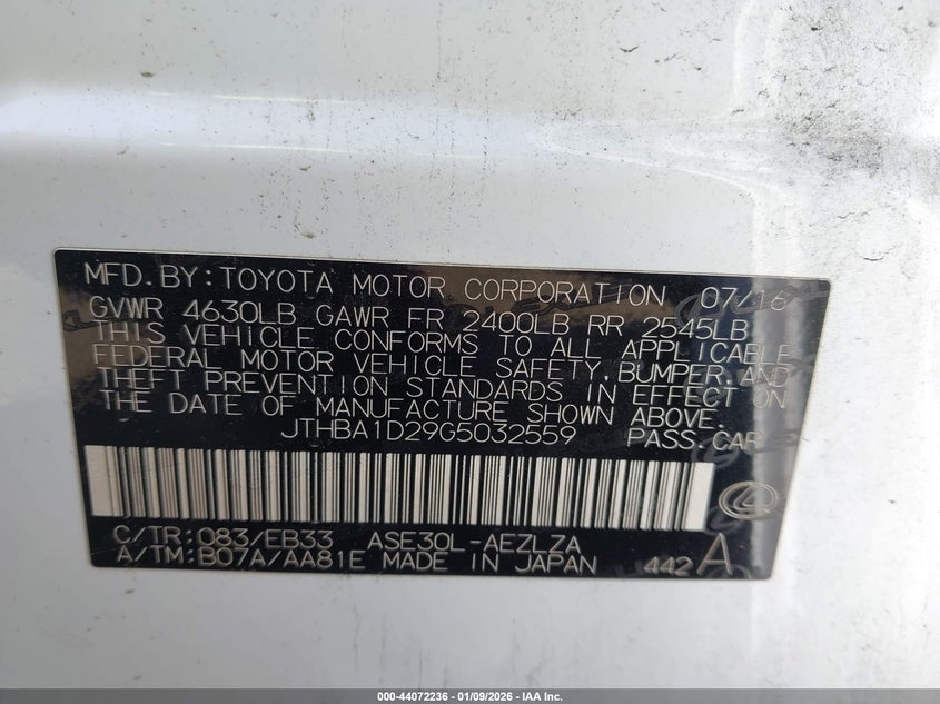 • JTHBA1D29G5032559