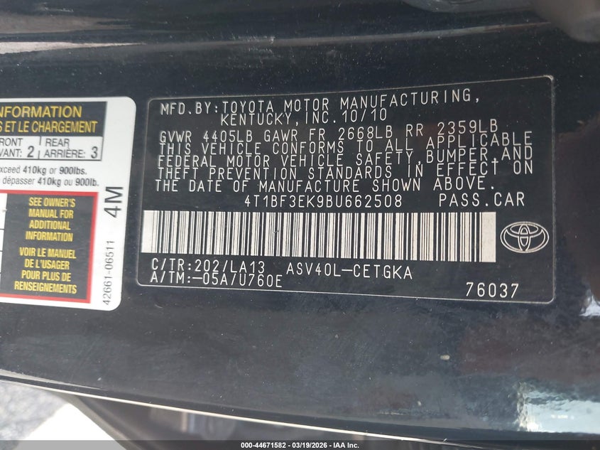• 4T1BF3EK9BU662508