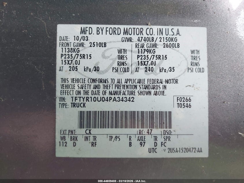 • 1FTYR10U04PA34342