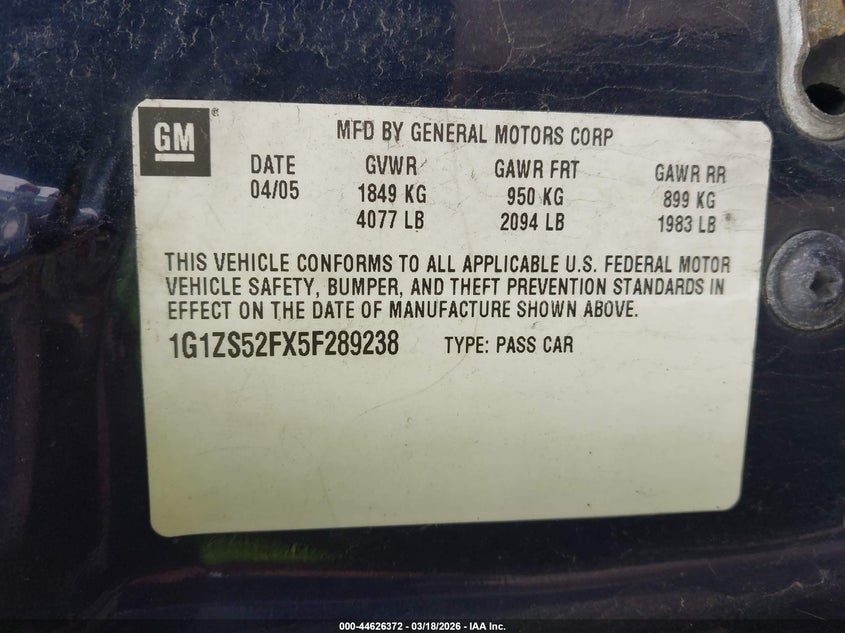 • 1G1ZS52FX5F289238