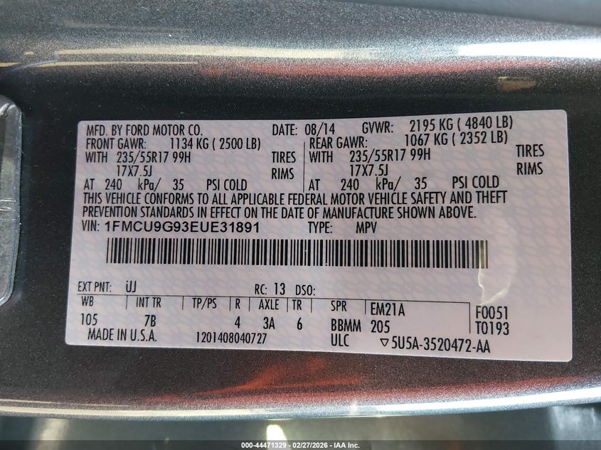 • 1FMCU9G93EUE31891
