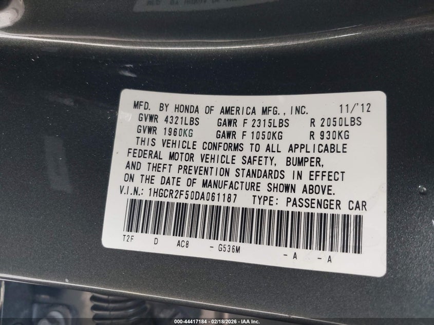 • 1HGCR2F50DA061187