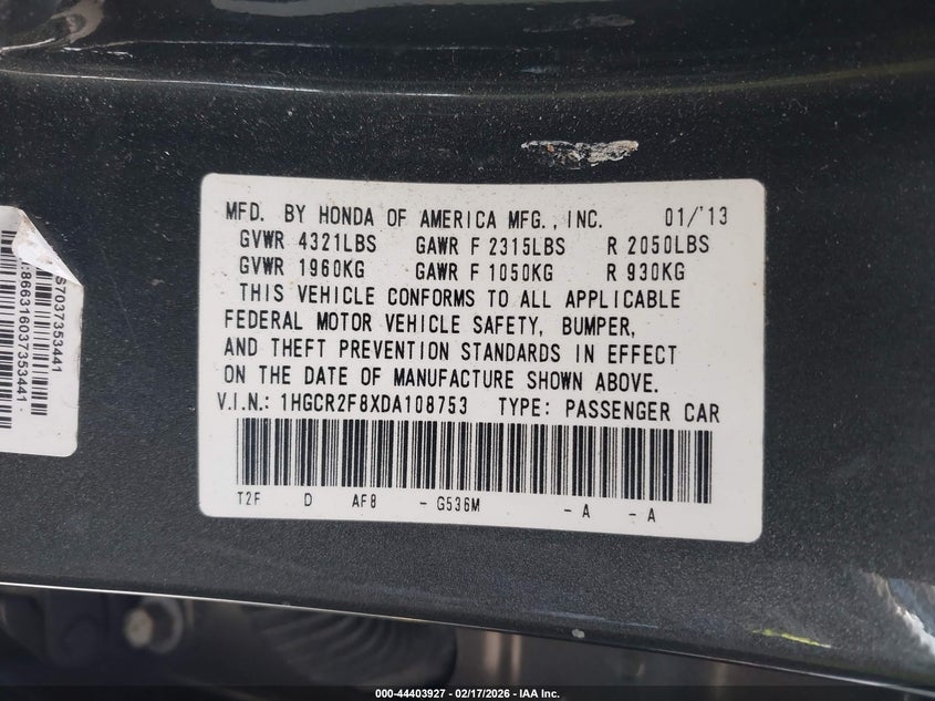 • 1HGCR2F8XDA108753