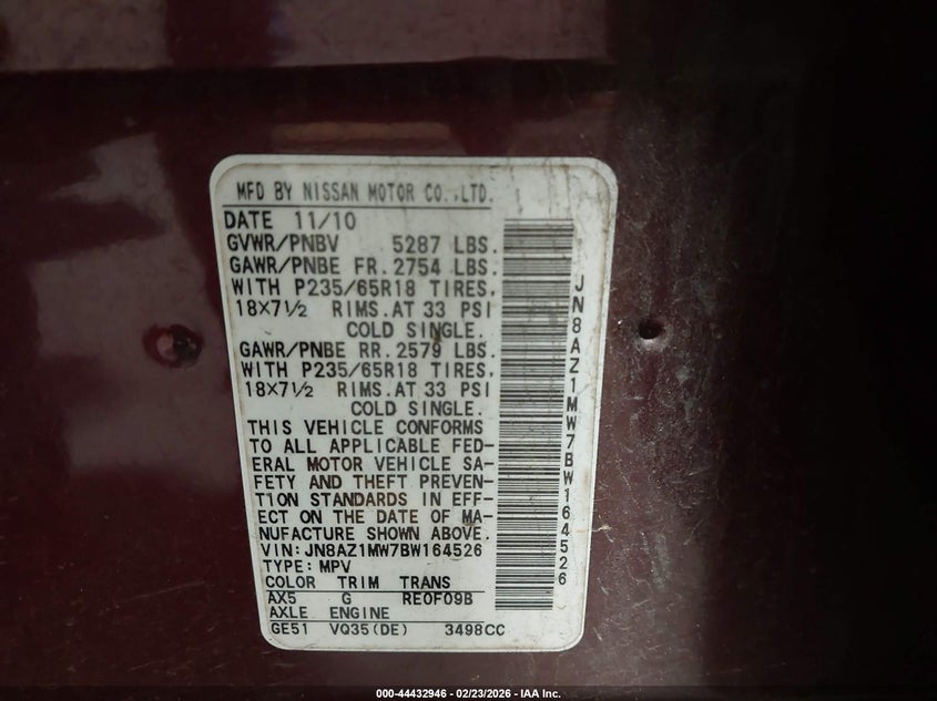 • JN8AZ1MW7BW164526