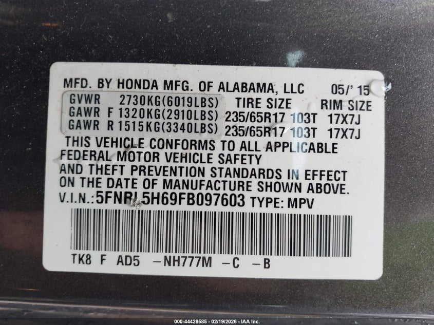 • 5FNRL5H69FB097603