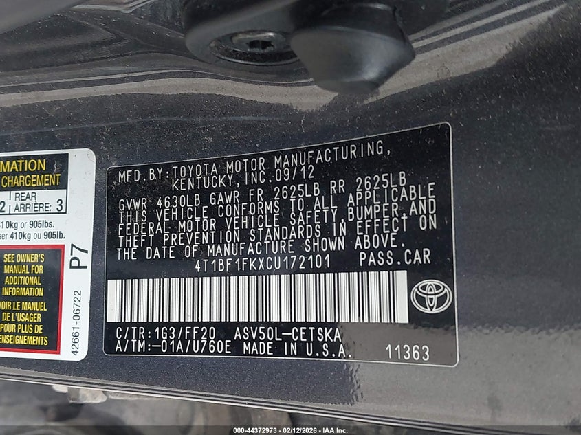 • 4T1BF1FKXCU172101