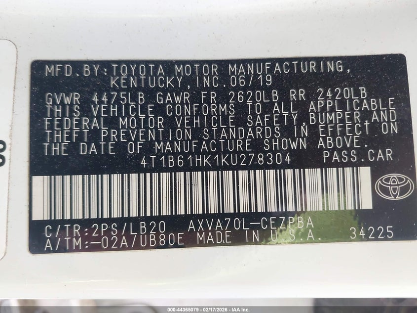 • 4T1B61HK1KU278304
