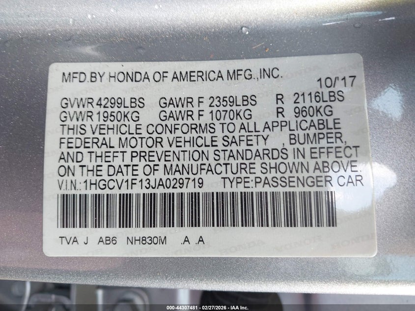 • 1HGCV1F13JA029719