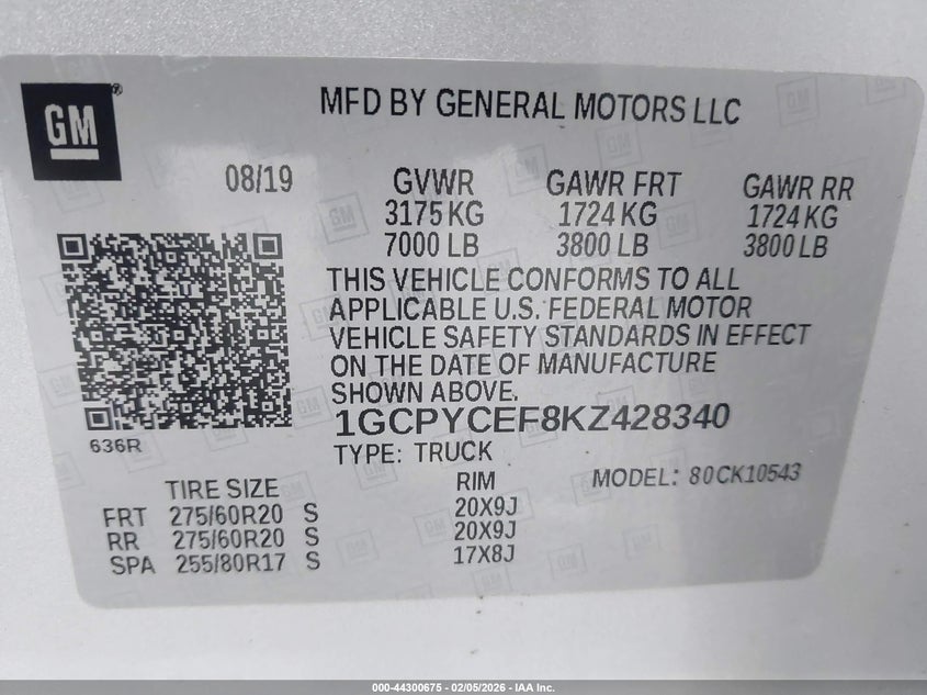 • 1GCPYCEF8KZ428340