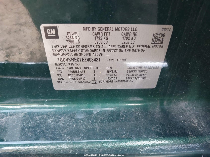 • 1GCVKREC7EZ403421