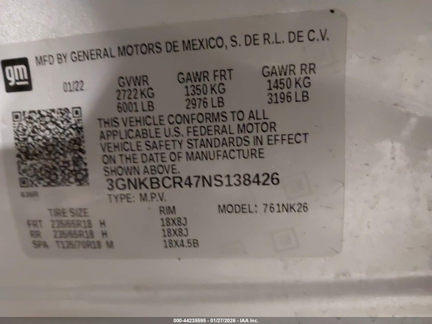 • 3GNKBCR47NS138426